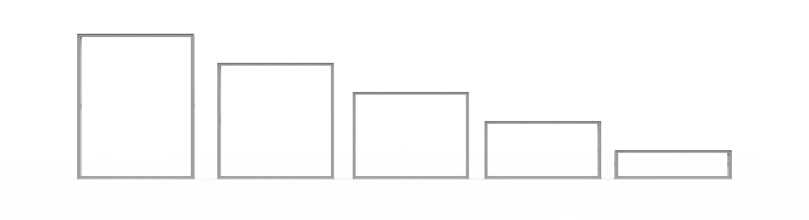 Unsere Rahmen bestehen aus leichtem, eloxiertem Aluminium. Wir bieten eine Auswahl von 8 Standardrahmengrößen, die Ihnen die Flexibilität bieten, jede gewünschte Messepräsentation zu erstellen: